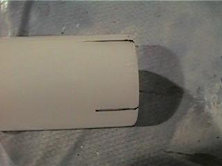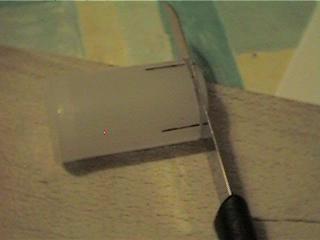 An den eingezeichneten Linien scheiden wir seitlich etwas ein, das wir den Faden einklemmen können.