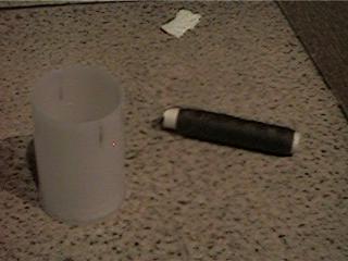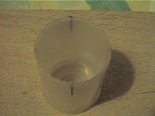 Als erstes bohren wir in den Deckel der Filmdose mittig ein 3er Loch. Das geht ein den trtansparenten ganz einfach , da genau in der Mitte eine Einbuchtung ist.