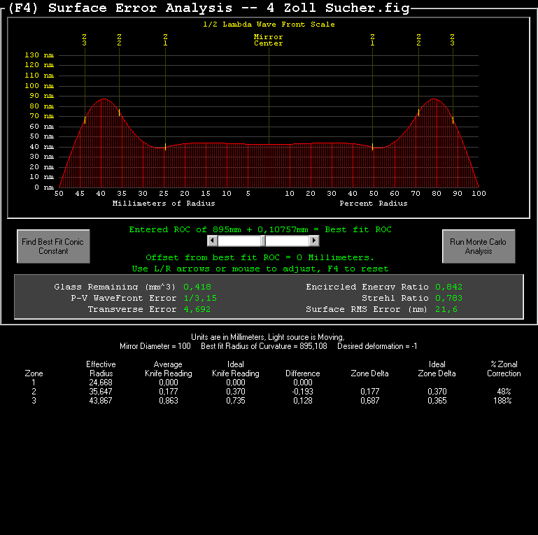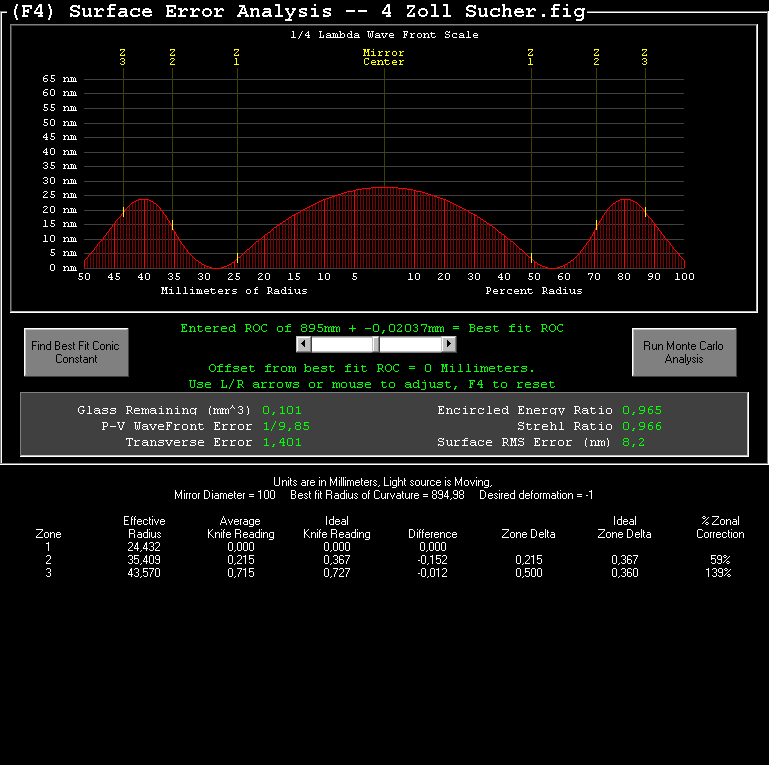 Überkorrektur runter. Aber wer kann schon mit 0,20 Strehl leben ? Wieder war es die Zone 2 bei