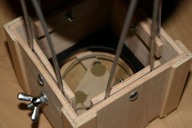 Der Spiegel liegt auf 3 Silikon-Plobs. Die Stäbe sind aus Alu.