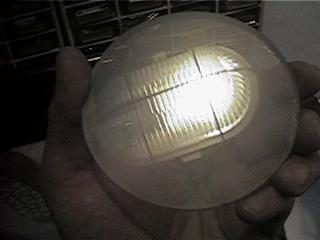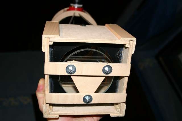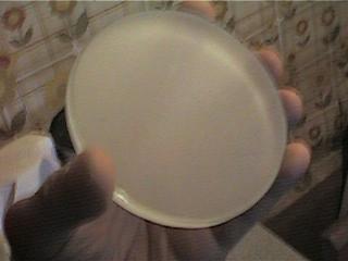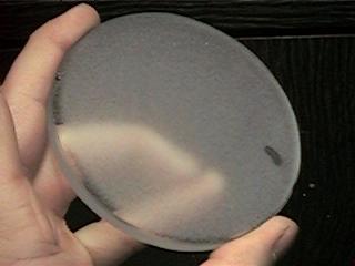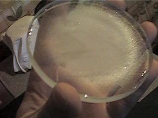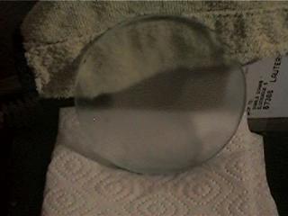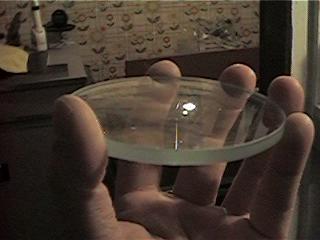 Noch während der Polierphase des 160mm f/4.8 (12mm dick) Selbstschliffes besorgte ich mir die kleine Scherbe für den 4 Zoll Sucher. Als ich die kleine nur 6mm dünne Scheibe sah, war mir klar das mir Roland da richtige Herausforderung gegeben hatte. Das wird hart, dachte ich !
