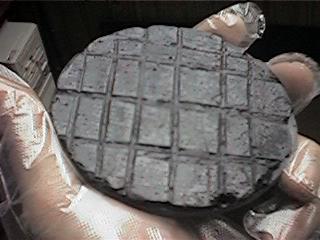 des Lochs (3-4cm) und legte es auf die warme Pechhaut. Das pressen vertiefte die Mitte nun so,